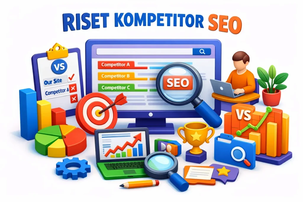 SEO Competitor Reserach merupakan proses dalam menganalisa website competitor secara bertahap. Hal ini di lakukan untuk mengetahui struktur konten, keywords yang digunakan, backlink, hingga peringkat.